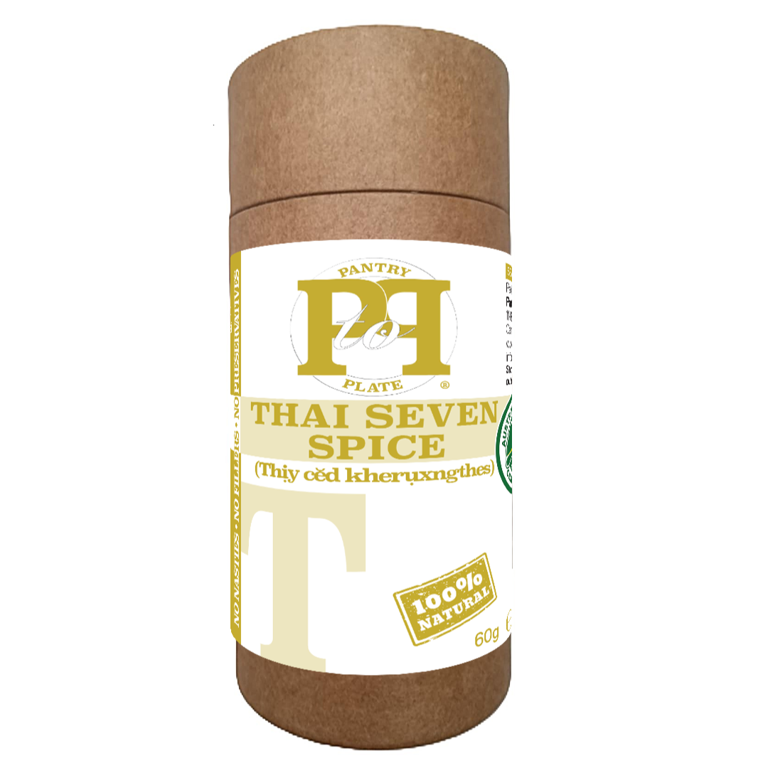 If authentic Thai cuisine could be described in one word, it would be "Balance". Thai Seven Spice is a delicious combination of sour, sweet, salty, bitter, and spicy that brings together Thai and South-East Asian Cooking's essentials in one perfectly balanced blend.